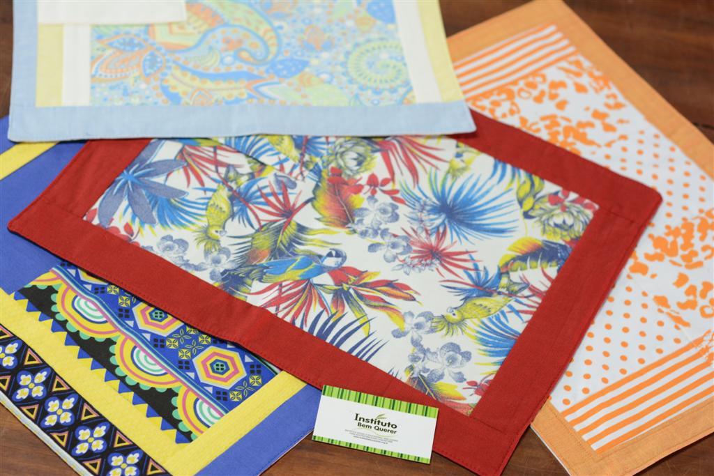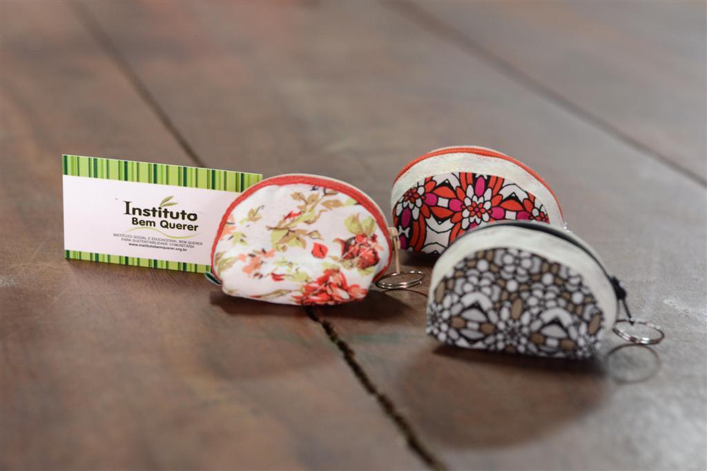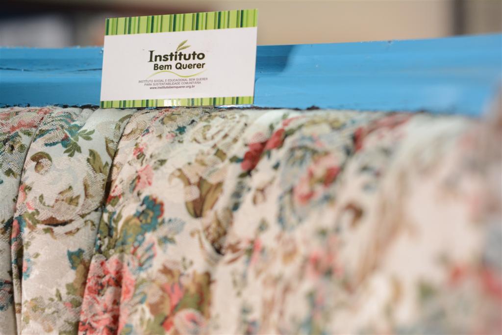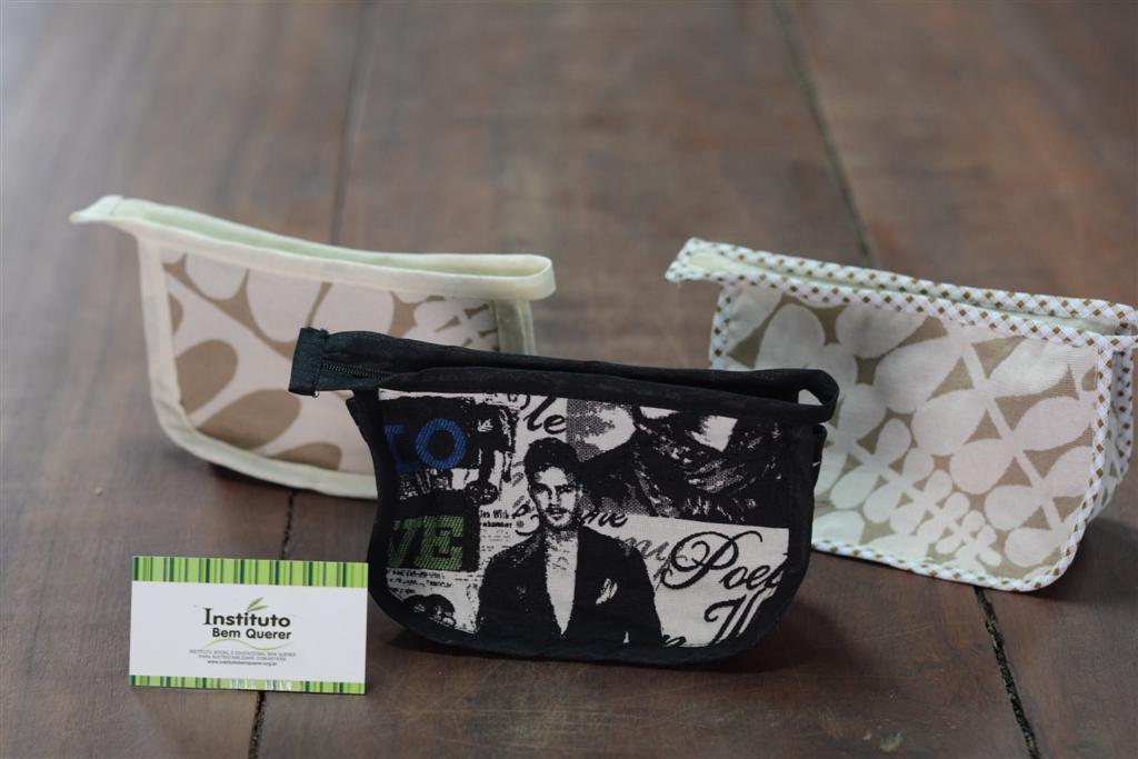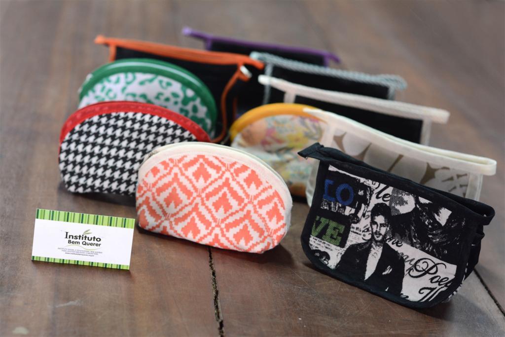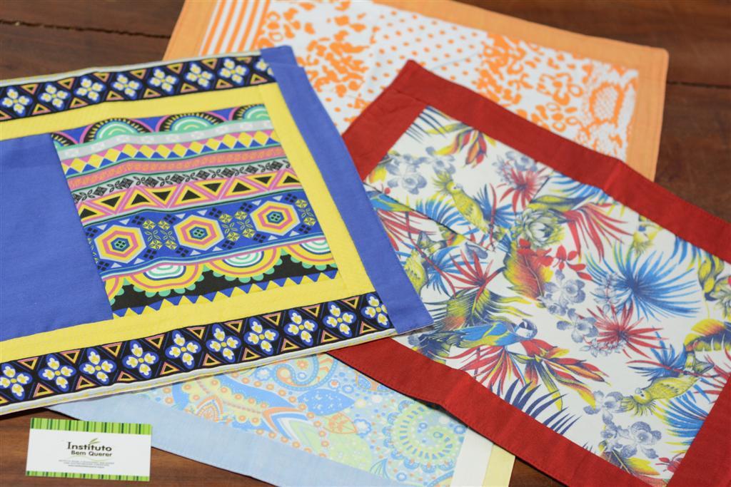 - Produtos artesanais elaborados através do reaproveitamento de tecidos, banners e demais itens doados (almofadas, jogo americano, toalha de mesa, necessaires, porta moedas, ecobags, entre outras);