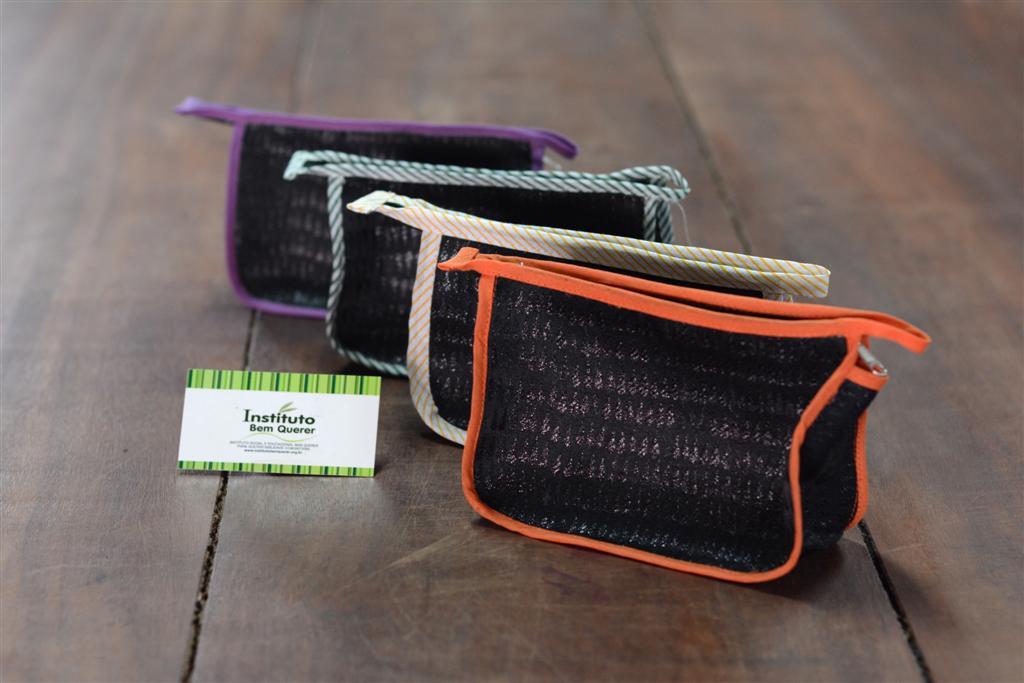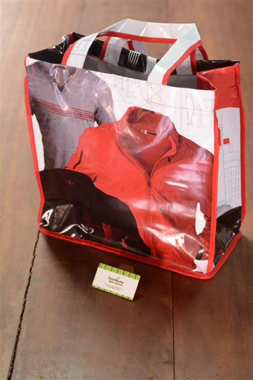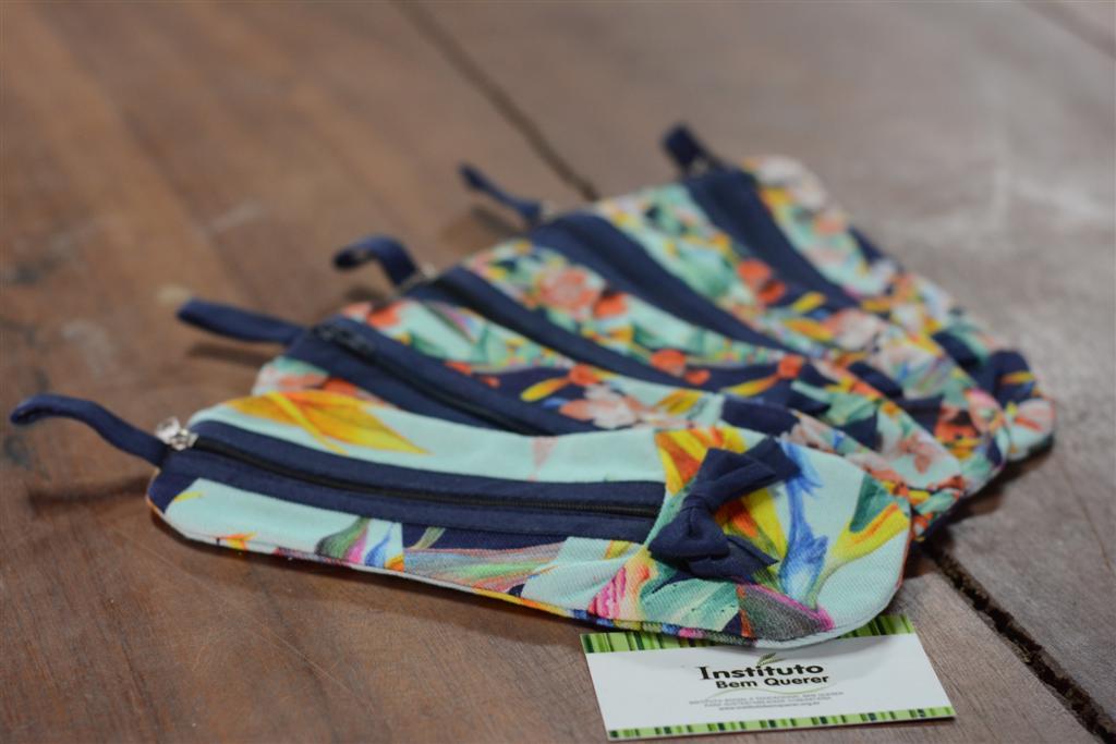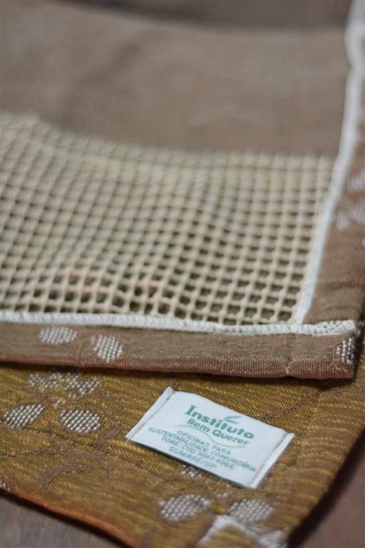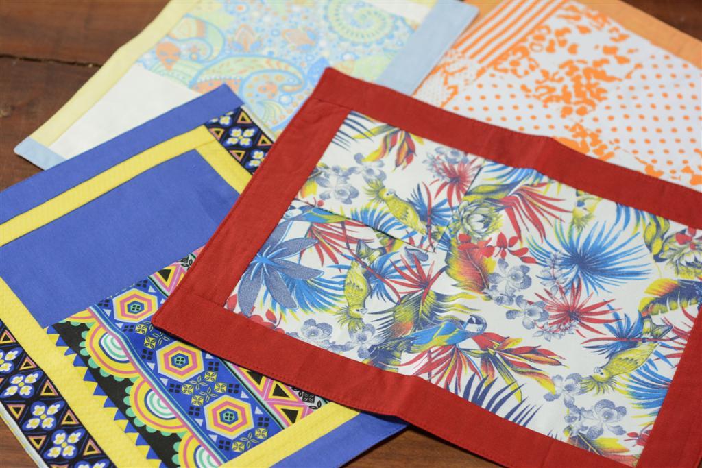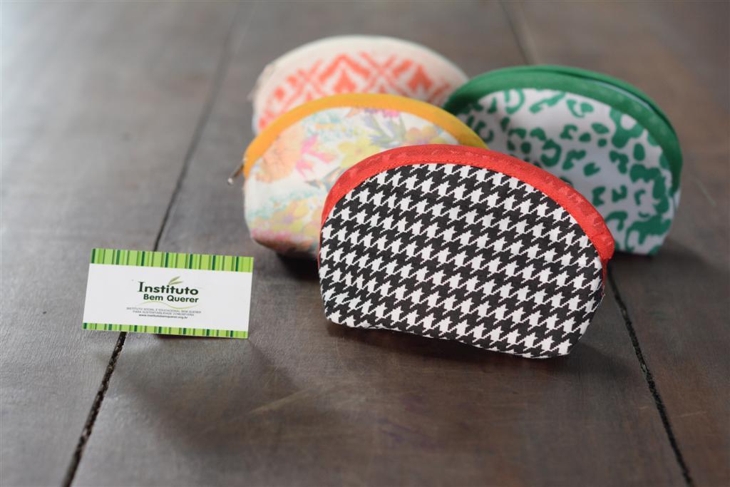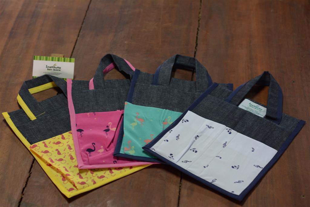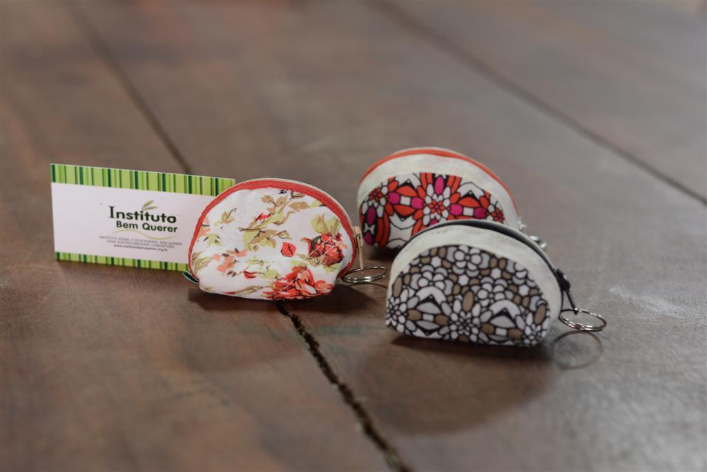 - Produtos artesanais elaborados através do reaproveitamento de tecidos, banners e demais itens doados (almofadas, jogo americano, toalha de mesa, necessaires, porta moedas, ecobags, entre outras);