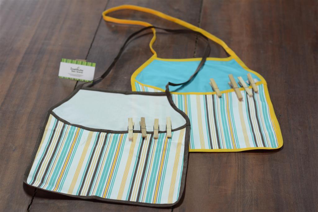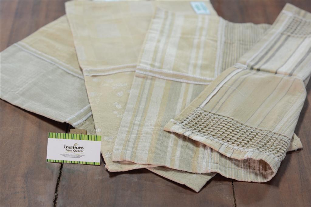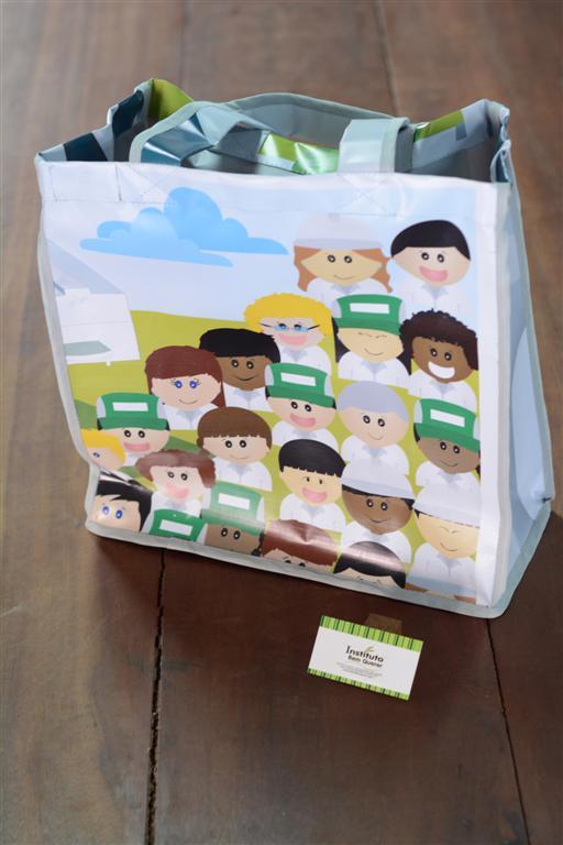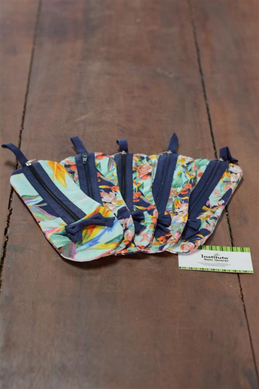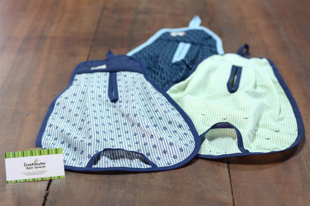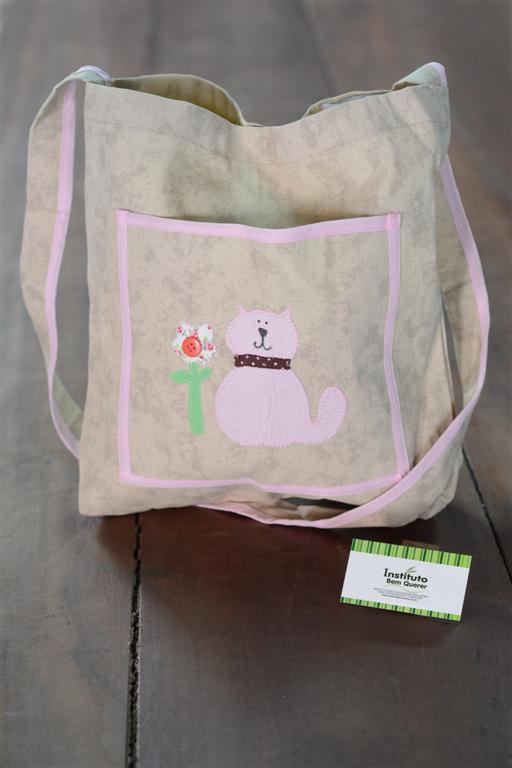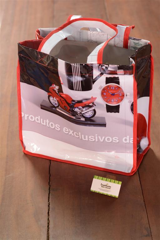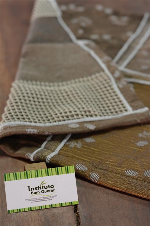 - Produtos artesanais elaborados através do reaproveitamento de tecidos, banners e demais itens doados (almofadas, jogo americano, toalha de mesa, necessaires, porta moedas, ecobags, entre outras);
